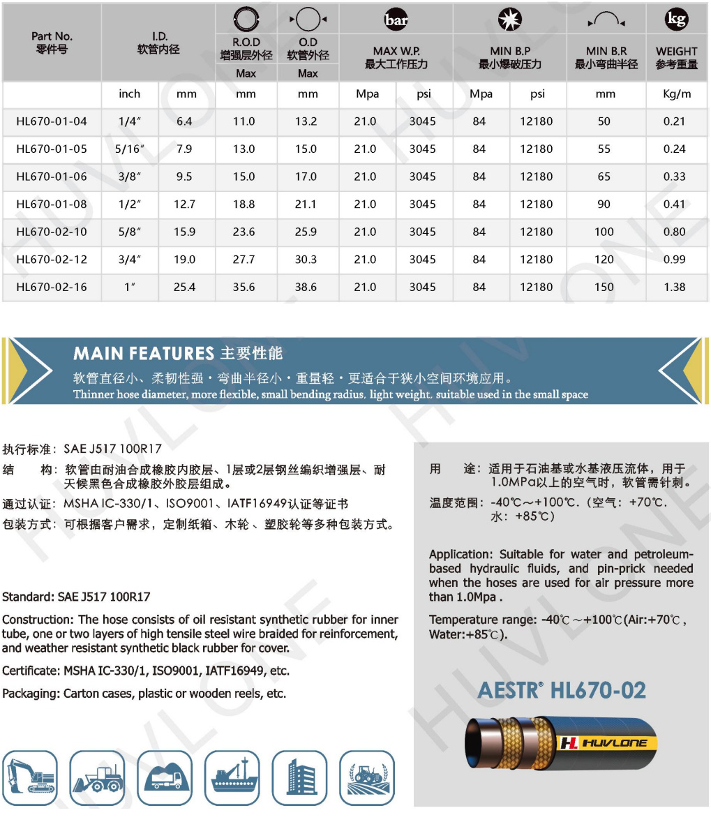 產(chǎn)品用途:適用于石油基或水基液壓流體,用于1.0MPa以上的空氣時(shí),軟管需針刺。