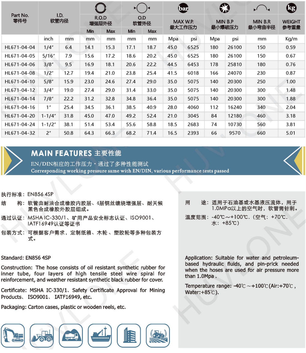 DIN EN8564SP四層鋼絲纏繞橡膠軟管