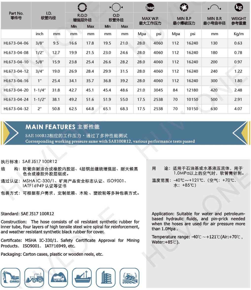 SAE J517 100R12四層鋼絲纏繞橡膠軟管