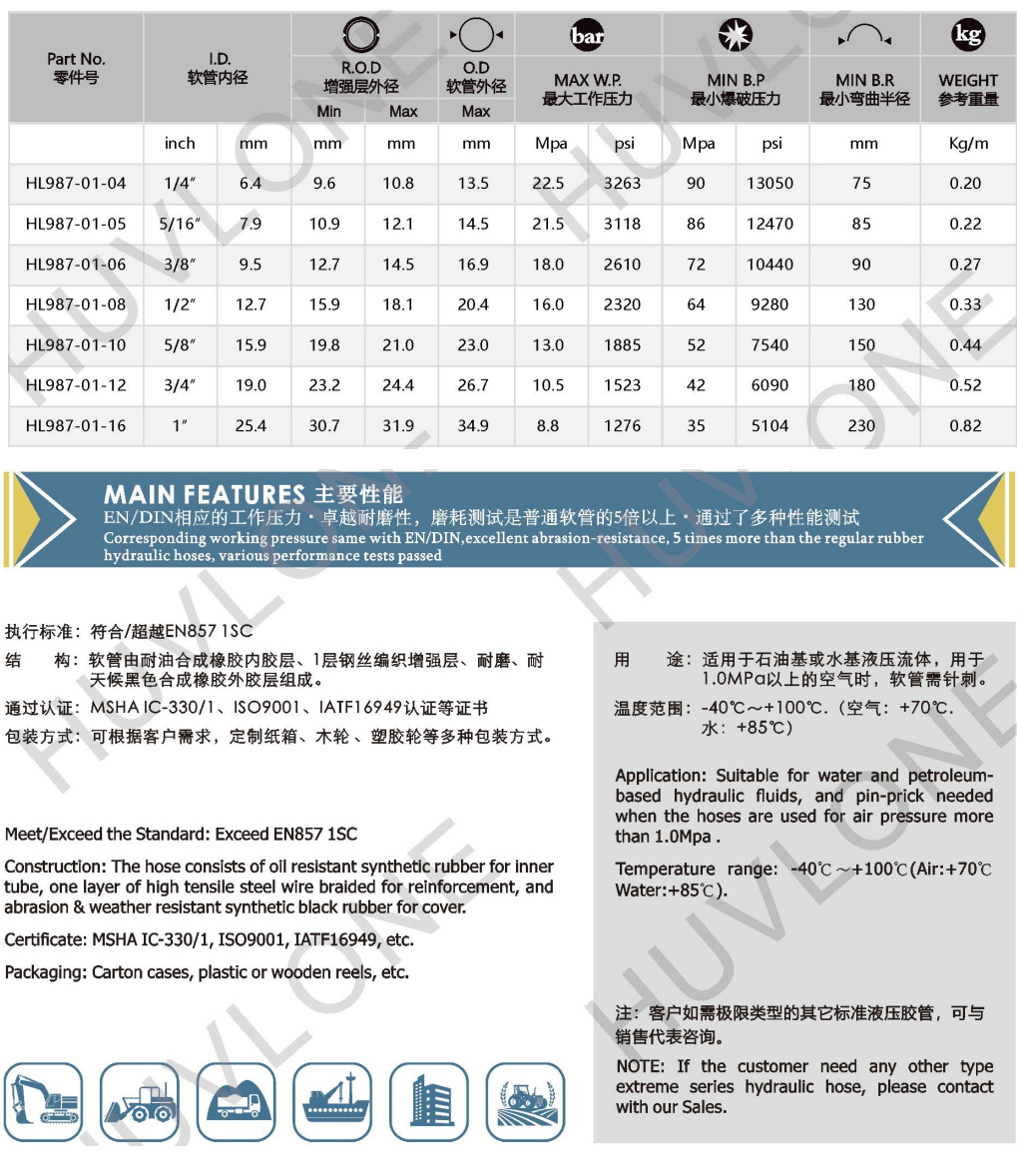 產品用途:適用于石油基或水基液壓流體,用于1.0MPa以上的空氣時,軟管需針刺。