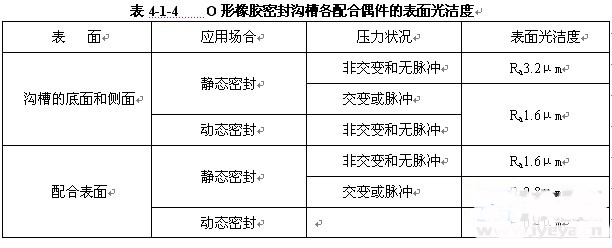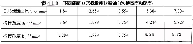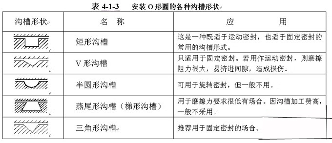 因為O形橡膠密封圈是安裝在各種溝槽中使用,現(xiàn)將安裝溝槽情況列于表4-1-3。