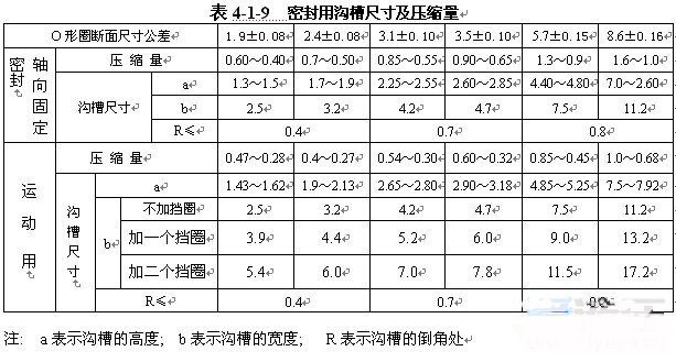因?yàn)镺形橡膠密封圈是安裝在各種溝槽中使用,現(xiàn)將安裝溝槽情況列于表4-1-3。
