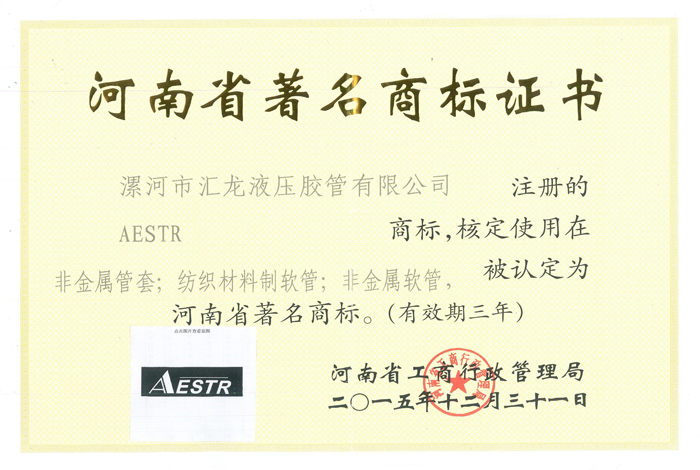 河南省著名商標(biāo)證書